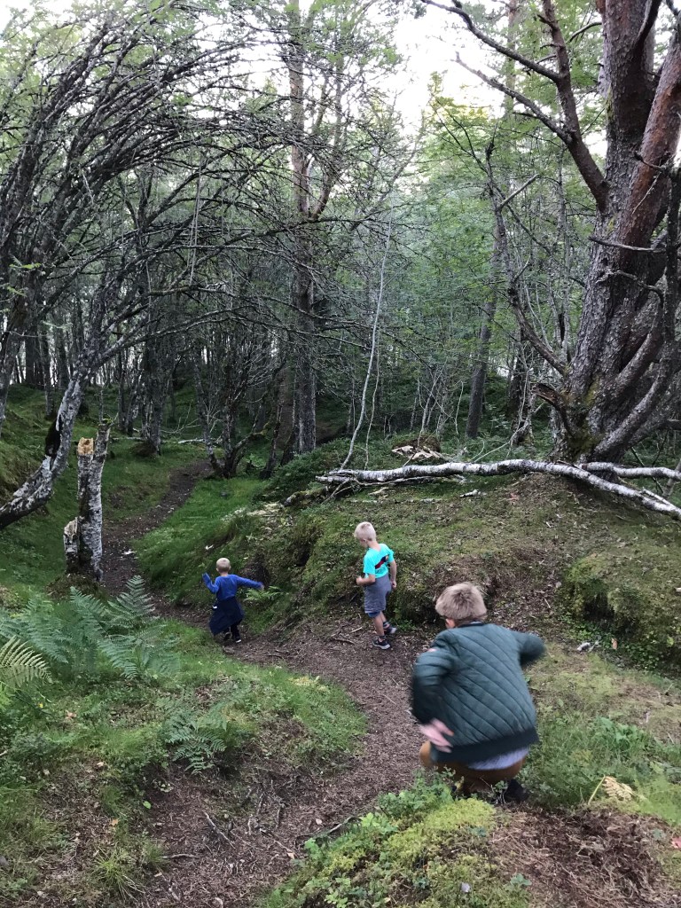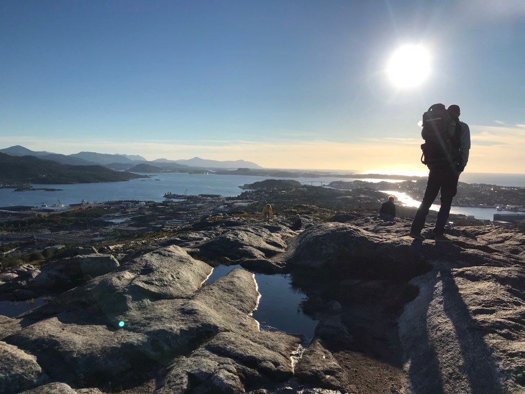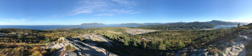 Vi trængte i den grad til frisk luft og afledning af tankerne, så da Kenth var færdig med dagens arbejde besluttede vi os for at tage på aften-vandretur op til toppen af “bjerget i baghaven” som drengene kalder det. Solen skinnede fra en stort set skyfri himmel, vinden var blid, udsigten storslående og naturen var god ved os.