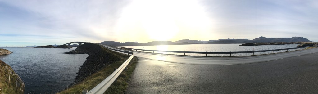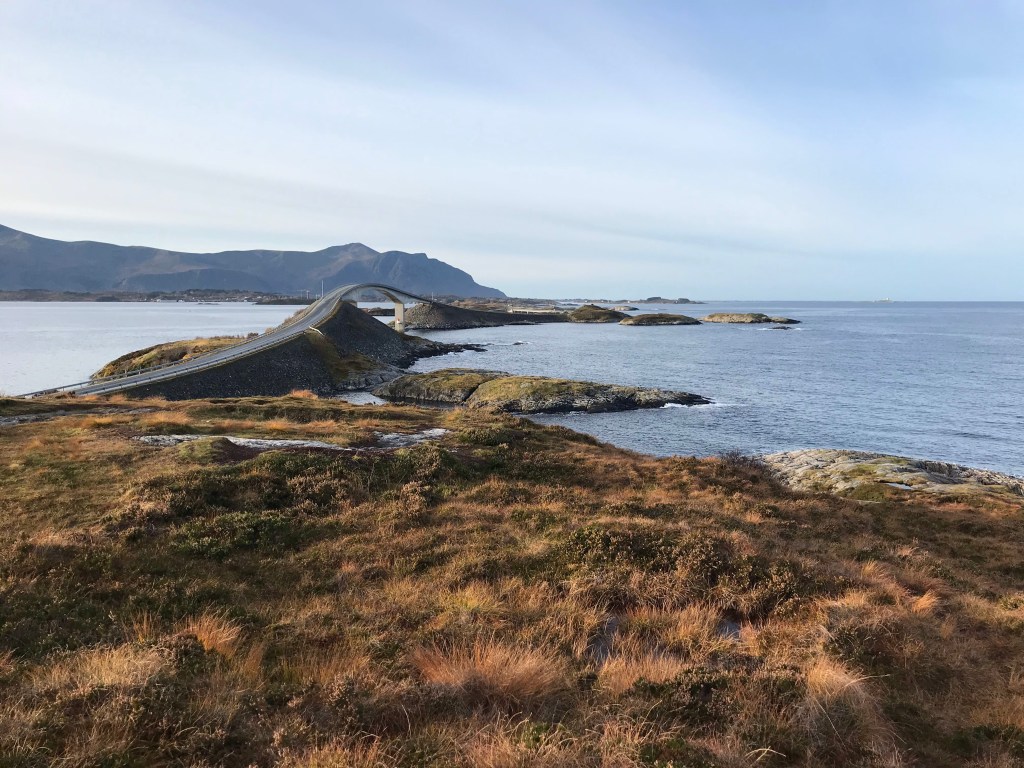 40 minutter væk fra vores hus ligger Atlanterhavsvejen. Det er veje og broer langs kysten henover flere småøer, og er efter sigende lidt af en turistattraktion. Efterhånden som tiden heroppe lakker mod enden prøver vi at nå alle de ting, vi ikke synes vi kan tage hjem uden at have oplevet – og Atlanterhavsvejen er èn af dem. Vi kørte derud her til formiddag, inden jeg skulle møde på arbejde kl. 12 – og det var da også et særdeles flot sted.