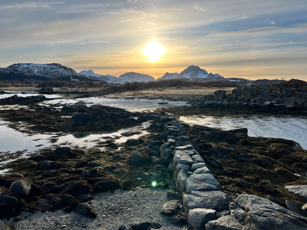 Jeg forlader Lofoten i silende regnvejr og krydser fingre for at lande i Korning med solskin – i hvert fald i morgen – og lidt højere temperatur. -og så glæder jeg mig ufattelig meget til kram og kys fra Kenth og drengene!