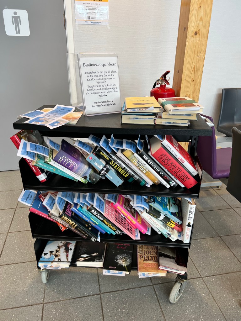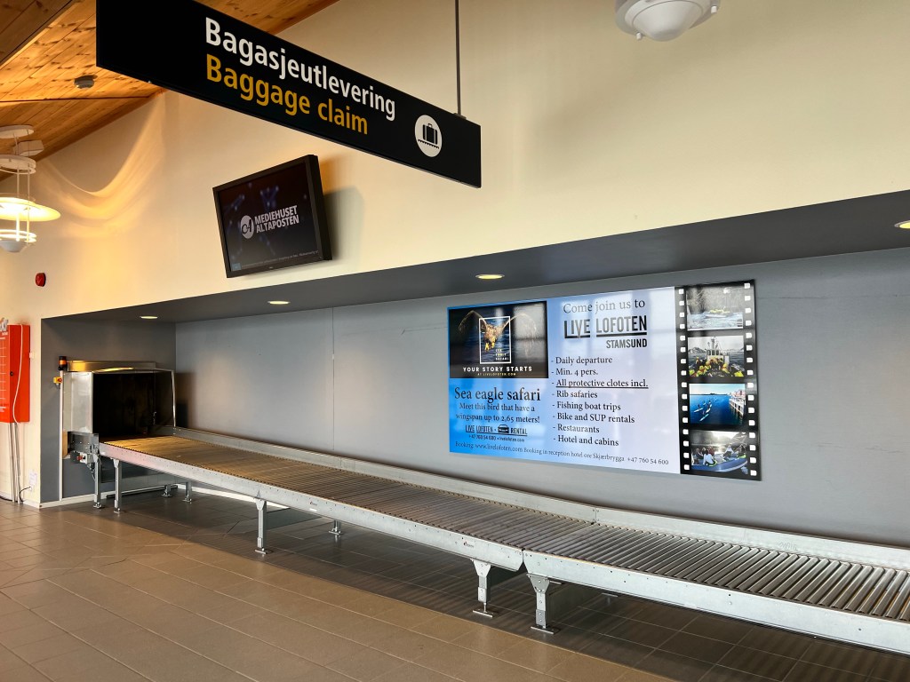 Så er det slut for denne gang. Jeg lukkede computeren i lægehuset ned kl 14:15, fik sagt farvel til alle, klædte om, kørte til lufthavnen, afleverede udlejningsbilen, checkede bagagen ind, gik igennem sikkerhedstjek – og her 25 minutter senere sidder jeg og venter på flyet, der først går om en time. Mine kolleger heroppe havde virkelig ret da de sagde at det var rigelig fint hvis bare jeg mødte op i lufthavnen 1/2 time før afgang; så meget is i maven havde jeg dog ikke, specielt ikke med tanke på at jeg har et par fly mere jeg skal nå. Jeg har lige omkring 1 time i både Bodø og Oslo fra jeg lander til næste fly afgår, så jeg krydser fingre for der ikke er forsinkelser.