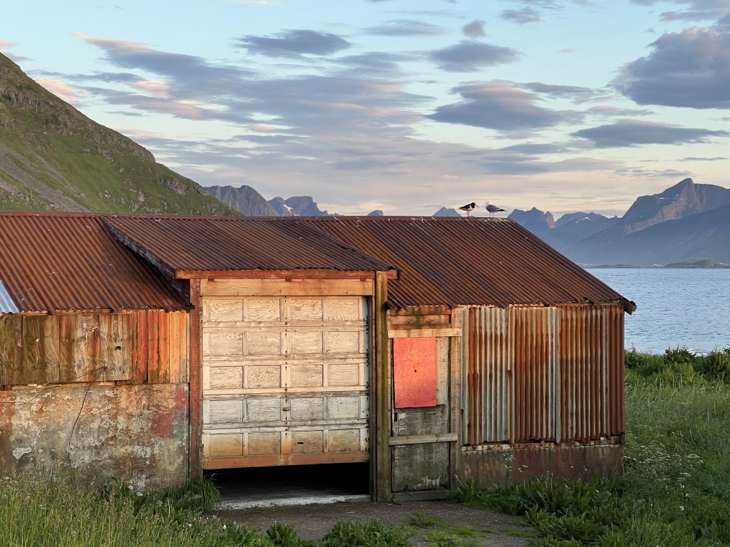 Kontrasterne til skønheden kan være store. Læg mærke til mågen og tjelden der står på taget og “snakker” sammen😄